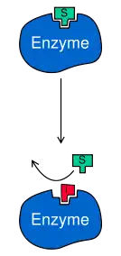 Enzymes are said to be specific in their nature, as the shape of the active site will only allow one molecule to fit. It may either catalyse the breaking up or joining of molecules, forming one or more products. When the reaction is complete, these products leave the active site, and as said before - the enzyme is unchanged and can thus receive another substrate molecule. Most enzymes end in 'ase', for example lipase, amylase