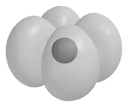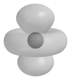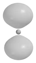 It is important to note that electrons are not entirely confined within the atom. The orbitals shown below give the shapes of the regions that contain the electron 95% of the time. However, the other 5% of the time, the electron is somewhere outside this region. An electron from an atom in your hand may temporarily be on the other side of the moon, but it is only very rarely there, so rarely in fact that we can ignore it for the purposes of understanding the behaviour of atoms.