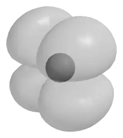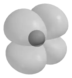 Sometimes, particularly when discussing d orbital splitting in complexes, d orbitals are arranged into two groups based on their symmetry. The dz² and dx²−y² orbitals form a group called eg, while the dxy, dxz and dyz orbitals form a group called t2g.