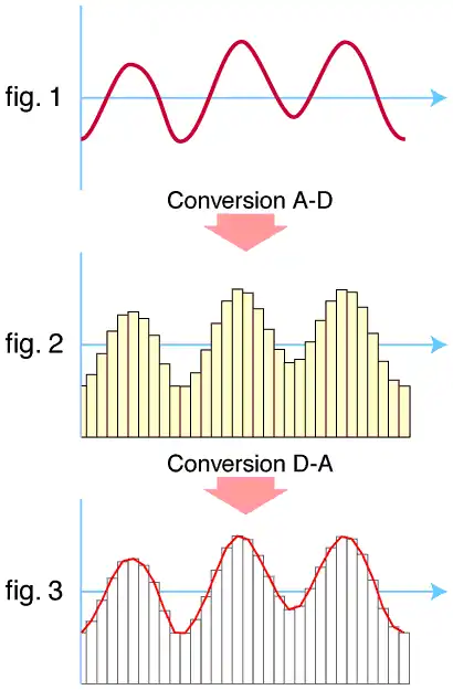 - An analogue to digital converter(ADC) converts analogue sound into digital signals which can be digitally stored.
