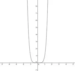 As we can see by looking to the right graphs of an even power are a "U" shaped curve. with greater powers having a longer "flat" section between 1 and -1