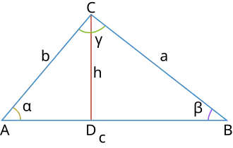 For any triangle ABC with angle measurement , , and sides of length a,b,c.