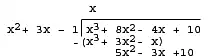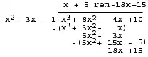 In core four you will be expected to divide polynomials of up to the fourth degree by either a linear or quadratic polynomial. This only works if the numerator is greater than the denominator. The resultant will always be in the form;