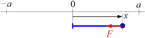 When (i.e. to the right of the origin), the resultant force points to the left, towards the origin. When , the resultant force points to the right, towards the origin. Because the resultant force always points towards the origin whenever the oscillator is not at the origin, the resultant force can be termed a restoring force. The behaviour of the restoring force suggests that the speed of the oscillator is maximum at the origin and is zero at the two ends where it changes direction (i.e. when ).