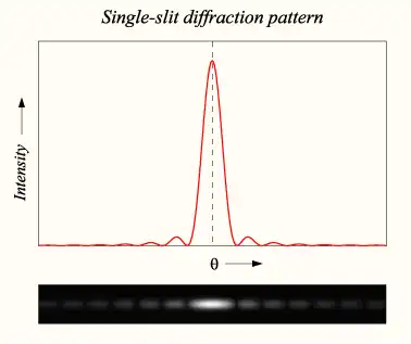 We have already seen why fringes are visible when light passes through multiple slits. However, this does not explain why, when light is only passing through 1 slit, a pattern such as the one on the right is visible on the screen.