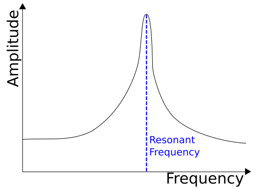 If you were to force an oscillation at a range of frequencies, and measure the amplitude at each, the graph would look something like the following: