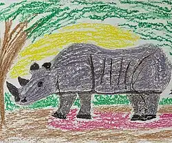| Cave paintings showing Javan rhinoceros wearing a business suit screaming aloud with hands on the cheek while seeing the stock price crash.png |