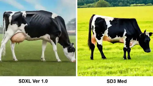 Note: See the udder from cows missing in SD3 Med possibly due to the strict filtering on dataset