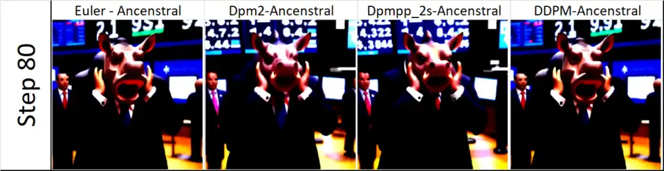Ancestral sampling technique introduces a degree of randomness or "ancestral noise" at each step of the denoising process. While ancestral methods add randomness, they do so in a structured way that often leads to similar overall compositions in the generated images.