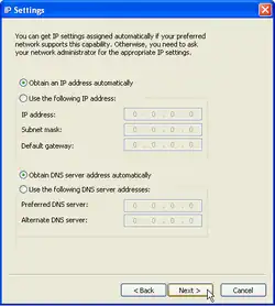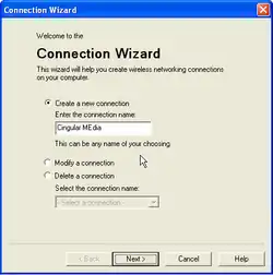 2. When the Wireless Manager is run for the first time, the Connection Wizard will start automatically. Enter the following settings: