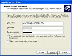 WAP@CINGULARGPRS.COM (must be all uppercase)