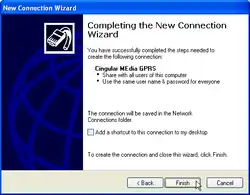 This process should create a standard Windows Dial-Up Networking (DUN) connection that can be managed and used in Windows (Control PanelNetwork Connections) without having to launch mobile PhoneTools. Be sure to set the port speed...