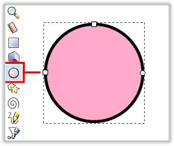 To draw an ellipse, circle, or an arc select the Ellipse Tool, and drag from the top left to the bottom right. The ellipse tool has a total of four handles: two square handles control the size and aspect ratio; two circle handles control the angle of the arc. Mouse-over 🖰 your cursor on one of the square or circle handles and the Statusbar (bottom center) message will update and display the handle's available edits and any Ctrl, ⇧ Shift, and Alt key edits (if available).