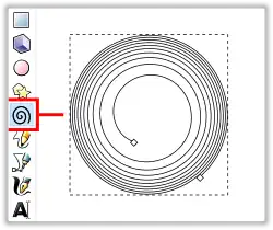 The Spiral Tool has two shape handles an outer (◇) handle and an inner (◇) handle. Dragging the handles lengthens and shortens the spiral.