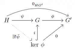 The kernel can be seen to satisfy a universal property. The following theorem explains this, but it is unusually abstract for an elementary treatment of groups, and the reader should not worry if he/she cannot understand it immediately.