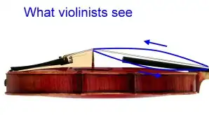 The primary role of the bridge is to transform the motion of vibrating strings into periodic driving forces by its feet to the top plate of the violin body. The configuration of the bridge can be referred to the figure. The bridge stands on the belly between f holes, which have two primary functions. One is to connect the air inside the body with outside air, and the other one is to make the belly between f holes move more easily than other parts of the body. The fundamental frequency of a violin bridge was found to be around 3000 Hz when it is on a rigid support, and it is an effective energy-transmitting medium to transmit the energy from the string to body at frequencies from 1 kHz to 4 kHz, which is in the range of keen sensitivity of human hearing. In order to darken the sound of violin, the player attaches a mute on the bridge. The mute is actually an additional mass which reduces the fundamental frequency of the bridge. As a result, the sound at higher frequencies is diminished since the force transferred to the body has been decreased. On the other hand, the fundamental frequency of the bridge can be raised by attaching an additional stiffness in the form of tiny wedges, and the sound at higher frequencies will be amplified accordingly.