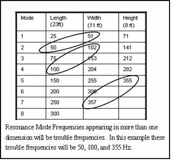 Standing waves can distort noises 300 Hz and down. These noises include the lower mid-frequency and bass ranges. Standing waves tend to collect near the walls and in corners of a room, these collecting standing waves are called room resonance modes.