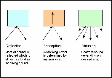 Have you ever listened to speakers outside? You might have noticed that the sound is thin and dull. This occurs because when sound is reflected, it is fuller and louder than it would if it were in an open space. So when sound is reflected, it can add a fullness, or spaciousness. The bad part of reflected sound occurs when the reflections amplify some notes, while cancelling out others, making the sound distorted. It can also affect tonal quality and create an echo-like effect. There are three types of reflected sound, pure reflection, absorption, and diffusion. Each reflection type is important in creating a "theater" type acoustic room.