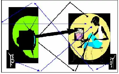 The Direct sound is coming right out of the TV to the listener, as you can see with the heavy black arrow. All of the other sound is reflected off surfaces before they reach the listener.