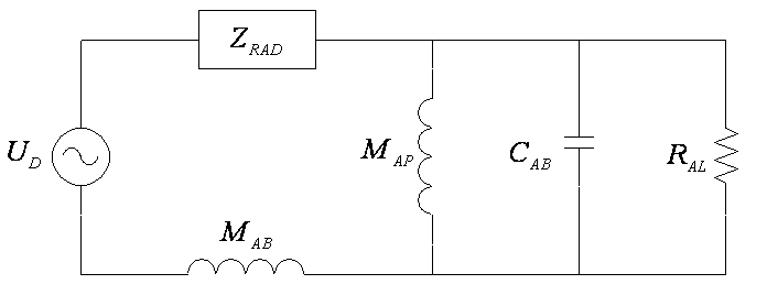 In this figure, represents the radiation impedance of the outside environment on the loudspeaker diaphragm. The loading on the rear of the diaphragm has changed when compared to the sealed enclosure case. If one visualizes the movement of air within the enclosure, some of the air is compressed and rarified by the compliance of the enclosure, some leaks out of the enclosure, and some flows out of the port. This explains the parallel combination of , , and . A truly realistic model would incorporate a radiation impedance of the port in series with , but for now it is ignored. Finally, , the acoustical mass of the enclosure, is included as discussed in the sealed enclosure case. The formulas which calculate the enclosure parameters are listed in Appendix B.