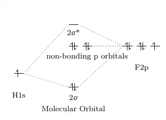 Besides that, we normally only consider the valence atomic orbitals. That's why the F1s orbital does not be considered here since it's full-filled.