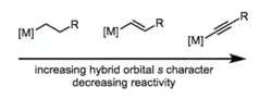 The metal carbon bond (M-C) bond is composed of a positive, charged metal and negative, charged carbon. As shown in Figure 1, as the electronegativity of metals increase, its reactivity decreases in contrast. To elaborate, the alkyl ligand's reactivity is inversely associated with the metal center's electronegativity.