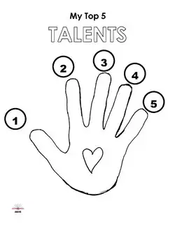 A child’s talent might be praying, singing, friendship, crafting, instruments, helpfulness, caring, telling a story, etc. Make a consolidated list of talents for the kids to see. Use the handprint attached for the adventurers to create their 5 top talents