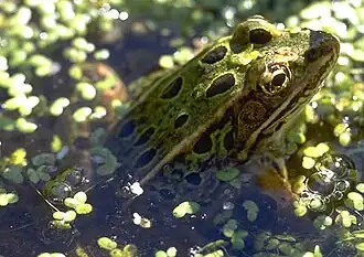 Where found: Once abundant in North America and Canada, their population has declined in recent years because of pollution and deforestation. Leopard frogs are often used as environmental indicator species because of their heightened sensitivity to chemical pollutants found in the air and water.