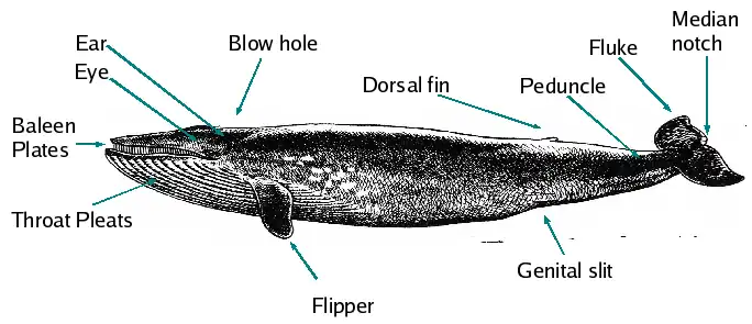 7. Successfully draw a Baleen Whale and identify where the following body parts are