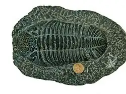 A large Devonian trilobite, Phacops moroccensis - l. Ammonite