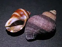 The marine shelled species of gastropod include abalone, cowries, conches, periwinkles, whelks, so the word snail can be used to apply to them and the majority of other sea snails which have coiled seashells. There are also a number of families of species where the shell is coiled only in the larval stage, such as all the various limpets.