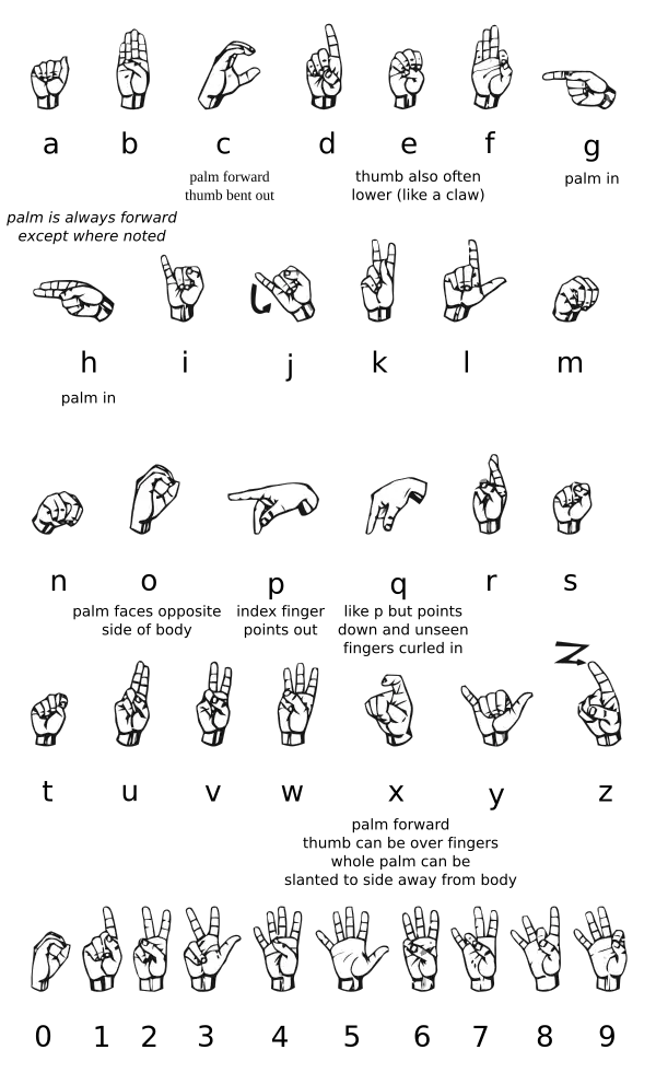 American Sign Language/Appendix A: Handshapes