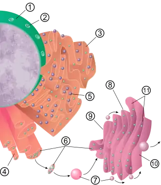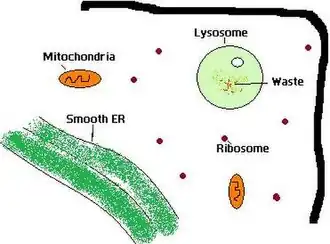 A typical animal cell. Within the cytoplasm, the major organelles and cellular structures include: (1) nucleolus (2) nucleus (3) ribosome (4) vesicle (5) rough endoplasmic reticulum (6) Golgi apparatus (7) cytoskeleton (8) smooth endoplasmic reticulum (9) mitochondria (10) vacuole (11) cytosol (12) lysosome (13) centriole.
