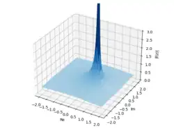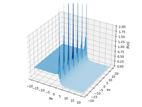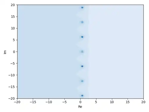 Notice that there is a peak when the input has real part 0.5 and imaginary part 0. Actually, this peak should extend up to infinity but we are limited by our technology. This is because if we set then