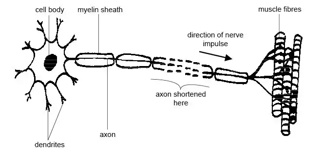 - cell body | nucleus | axon | dendrites | myelin sheath | muscle fibres
