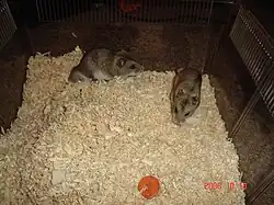 The hamster kept as pet most often is the Golden Hamster, they are sometimes called Syrian Hamster, too. So-called Teddybear or Black bear hamsters are breeds of the Golden Hamster. But also four species of smaller hamsters are popular pets, often called dwarf hamsters. These are Roborovski hamster, (Phodopus roborovskii) often called Roborovski, the chinese striped hamster (Cricetulus griseus) and the two subspecies of Phodopus sungorus, the winter white Russian dwarf hamster (Phodopus sungorus sungorus) and Campbell's dwarf hamster (Phodopus sungorus campellii). The care of the dwarf hamsters is similar to that of the golden hamster, but there are differences in feeding and housing needs and temperament. Winter whites and Campbell's are fairly popular, in the US the campells more so than the whinter whites, while it's other way round in Europe. Roborovski and Chinese striped Hamsters are somewhat more difficult to breed and keep, they are usually only available from breeders, and therefore limited to serious rodentia fans. Roborovski are especially not suitable for children.