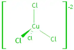 e.g. tetrachlorocuprate (II) and hexaaquacopper (II) ions: