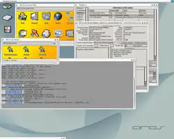 AROS is one of the intermediate levels between the computer hardware and the user. It is an open-source, clean-room implementation of AmigaOS 3.x that can be run on many different computer architectures. It runs primarily on x86 32bit and 64bit (as 32bit) hardware but also on motorola 68k and compatibles, AMD/Intel x86_64bit (work in progress), ARM and PowerPC.