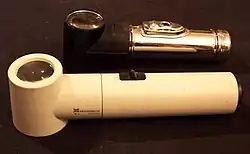 Spark plug reading flashlight/magnifiers aid in reading spark plugs.