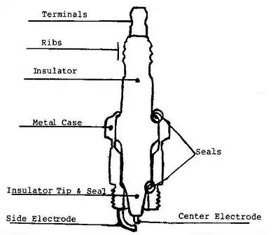 - Insulator: Made from Aluminum Oxide ceramic. Designed to withstand 1,200 deg. F. and 60,000 volts. The exact composition and length of the insulator, extending from the metal case into the combustion chamber partly determines the heat range of the plug.