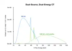 - Dual-source CT: two X-ray tubes with different kilovoltages and beam filtration (see Figure 7.17b for example spectra),