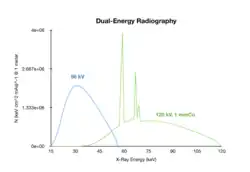 - Two general approaches to generating the appropriate X- ray energies have been developed. In one technique, the kilovoltage and filtration are switched rapidly during image acquisition, e.g. from 70 kV and 4 mm Al filtration to 140 kV with an additional 3 mm Cu filter. In the second technique, a single X-ray energy with two different filters is used, e.g. 80 kV with alternatively no added filtration and a cerium or samarium filter. Cerium has a K absorption edge at 40.4 keV, and samarium at 46.8 keV, and both materials generate a hardened beam compared with the unfiltered spectrum.
