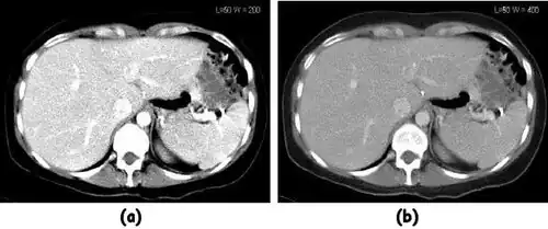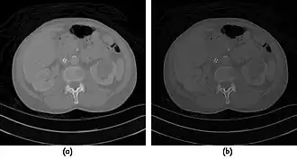 - ↑ Sagara Y, Hara AK, Pavlicek W, Silva AC, Paden RG & Wu Q, 2010. Abdominal CT: Comparison of low-dose CT with adaptive statistical iterative reconstruction and routine-dose CT with filtered back projection in 53 patients. Am J Roentgenol, 195:713-9.