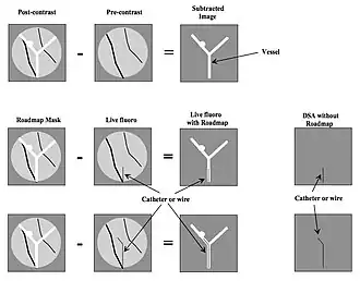 - Many DSA systems utilise the above reasoning to logarithmically transform both the mask and the live images prior to subtraction. A second theoretical advantage of this logarithmic subtraction process is the generation of images which are not influenced by spatial non-uniformities of the imaging device. X-ray image intensifiers, for example, display significant spatial non-uniformities.