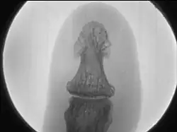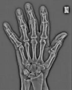 Recently awarded U.S.patent 7,426,258 describes a fluoroscopic camera which can achieve an intrinsic resolution of 18 lp/mm and is capable of magnifying the fluoroscopic image optically up to 40 times without resorting to geometric or digital pixel magnification. See: "Finger Tip" Fluoroscopic Image. This performance is achieved, in effect, by creating a very smooth shadow plane, positioning the specimen in close proximity to it, and then viewing the intensified shadow image optically with a zooming video camera. When the specimen is in close proximity to the shadow plane, the shadow sharpness is maximized and less influenced by the size of the focal spot. The closer the object is to its shadow, the sharper the shadow. The video camera employs a high- resolution, x-ray scintillator coating coupled to the input window of a non-demagnifying night-vision image intensifier. The fine detail from the scintillator image is intensified 30,000 times at the output window. That image is viewed optically with an auto-focusing, analog CCD camera capable of programmable zoom. The first important advancement realized from this development is a magnified, real-time fluoroscopic X-ray imaging system that isn’t dependent on micro-focal spot size, and the high costs associated with it. In addition, these new systems are compact and can record the fluoroscopic images as either dynamic video or static JPG.