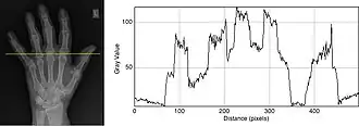 The conventional way of interpreting radiographic images in medicine is to regard them as representations of human anatomy. In the mathematical analysis of these images, however, we can interpret them as fluctuations of signal amplitude in space, as demonstrated in Figure 1.23.