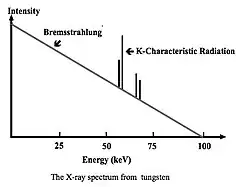 Finally, note that the bulk of the radiation in the X-ray spectrum for a tungsten anode is seen in Figure 1.10 to result from Bremsstrahlung.