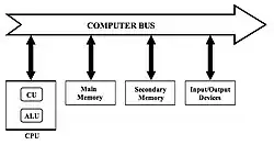 - Computer Bus: This consists of a communication pathway for the components of the computer - its function being somewhat analogous to that of the central nervous system. The types of information communicated along the bus include that which specifies data, control instructions as well as the memory addresses where information is to be stored and retrieved. As might be anticipated, the speed at which a computer operates is dependent on the speed at which this communication link works. This speed must be compatible with that of other components, such as the CPU and main memory.