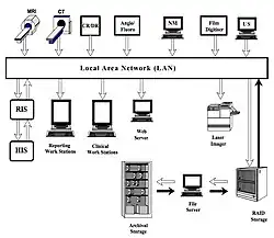 - Interfacing to a Radiology Information System (RIS) which in turn is interfaced to a Hospital Information System (HIS). The Integrating the Healthcare Enterprise (IHE) initiatives are used to facilitate such data transfers.