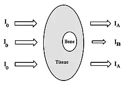 It might be thought that such absorption differences could be used in determining, for instance, the physical density of bone, or indeed the density of tissue. However the presence of scattered radiation has a strong, detrimental effect on such densitometric measurements, as we will see later.